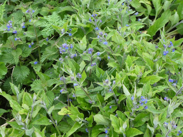 27th April 2024 - despite the unseasonal weather, David F braved a walk in Sluice Wood, and was rewarded with lovely displays of both Wood Forget-me-not and Green Alkanet.