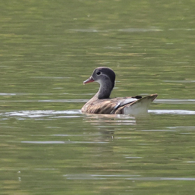 7th September 2025 - this male Mandarin Duck was spotted by Andy M on the Granta Park lake recently. This individual is in eclipse, the period when it renews its feathers, and so does not have the flashy spring plumage characteristic of the male and appears similar to the female, but retains the male's red bill.